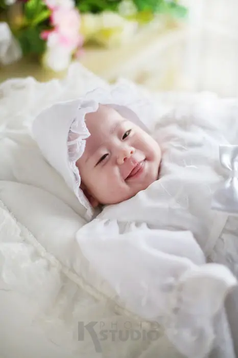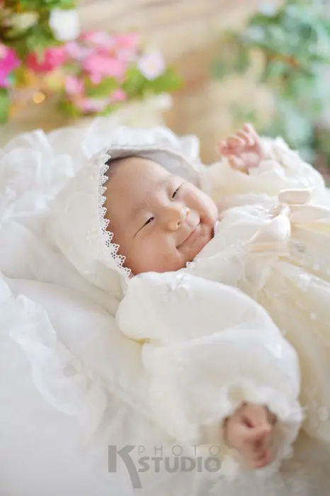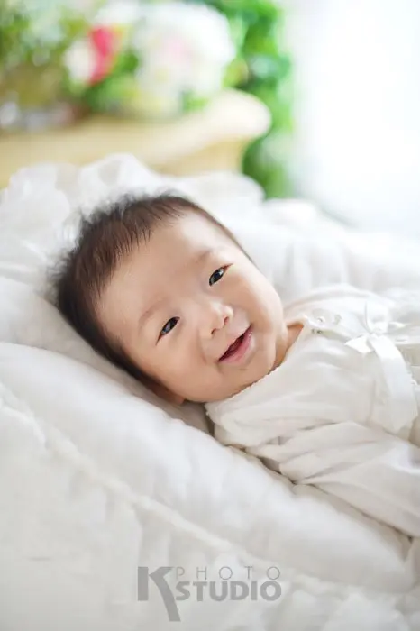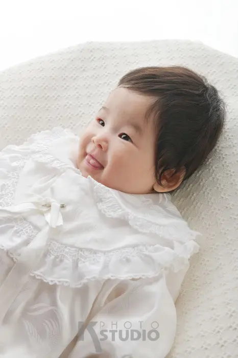 この時期になると、赤ちゃんの「寝る→泣く→寝る」の繰り返しの他に、かわいい笑顔も出てくるようになるので記念撮影もオススメです。